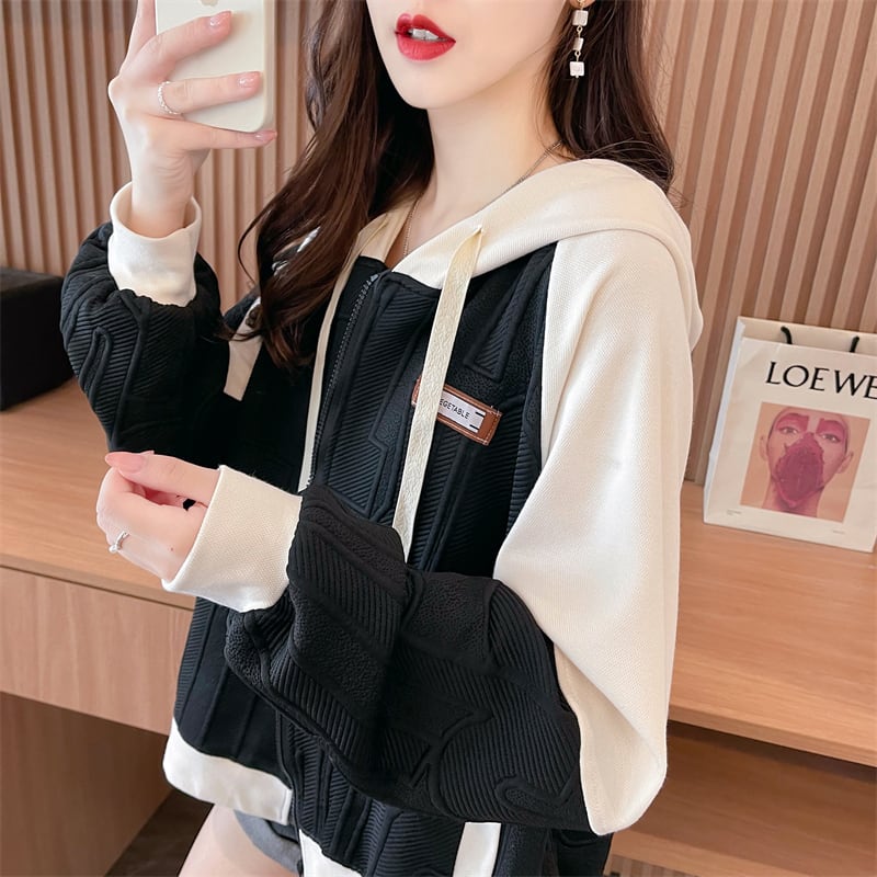 今季マストバイ 存在感抜群 トレンドアイテム アバンギャルド 切り替え 2色選択 パーカー トレーナー レディース フード付き カーディガン <ins-9551>