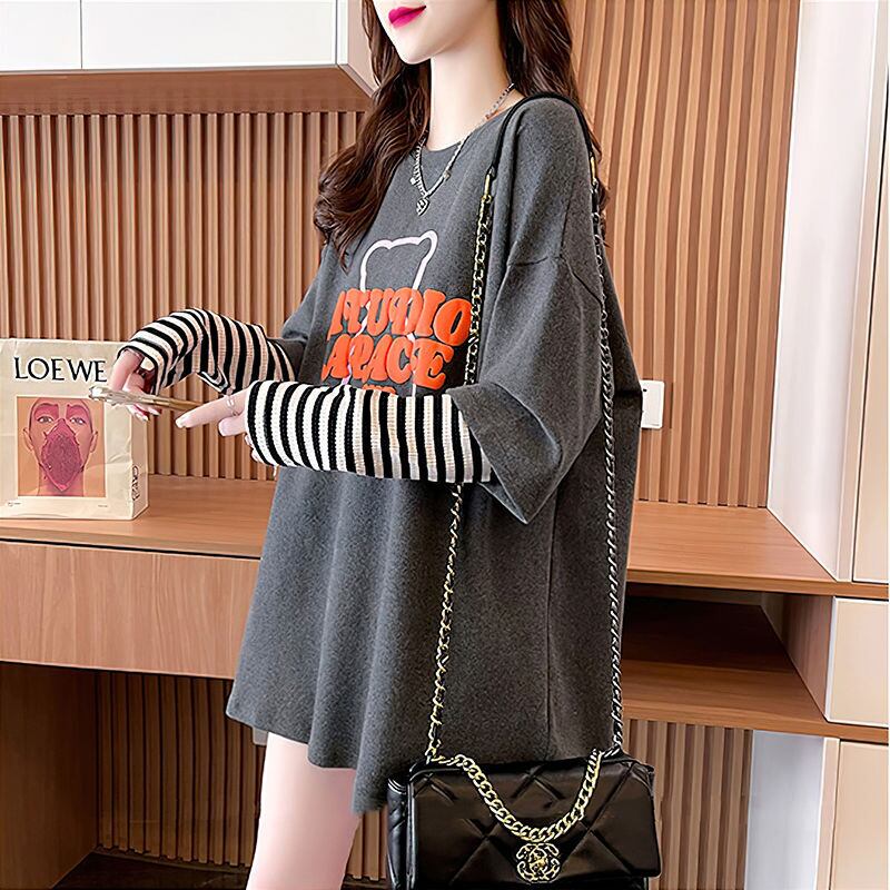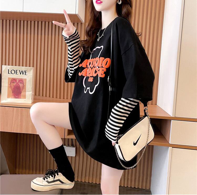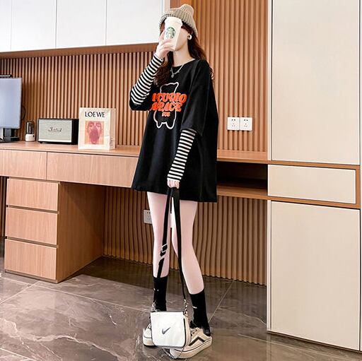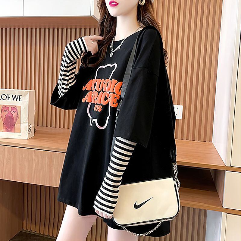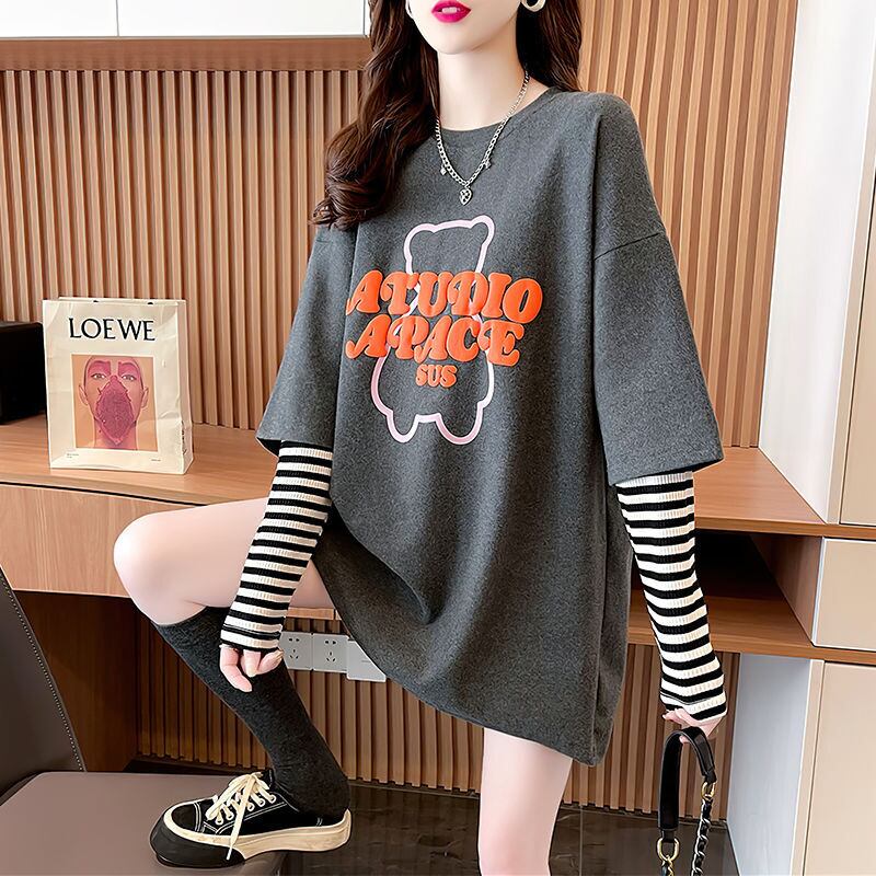 絶対流行 アバンギャルド カジュアル レイヤード風 プリント全3色 Tシャツ<ins-9587>