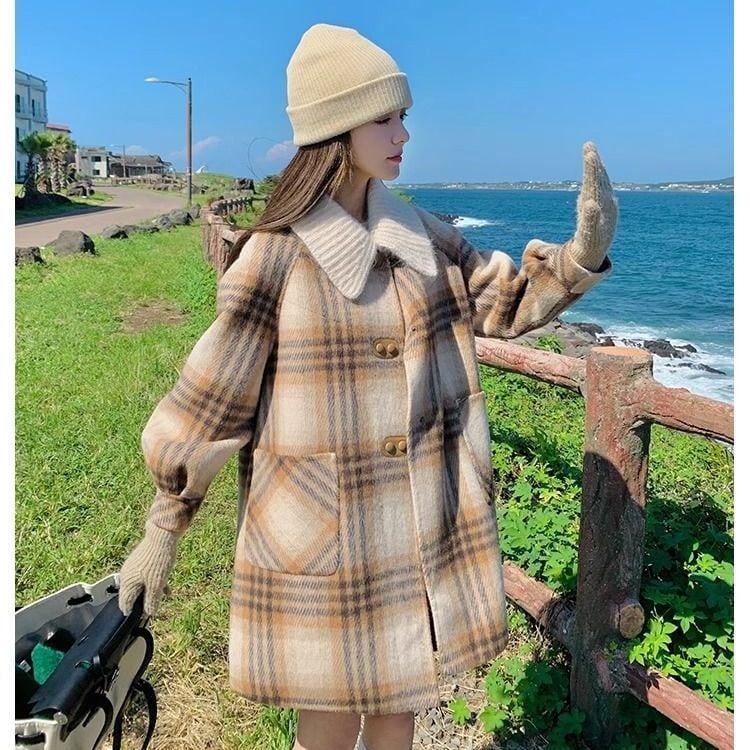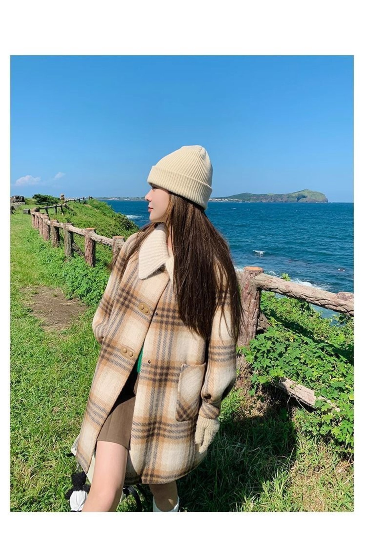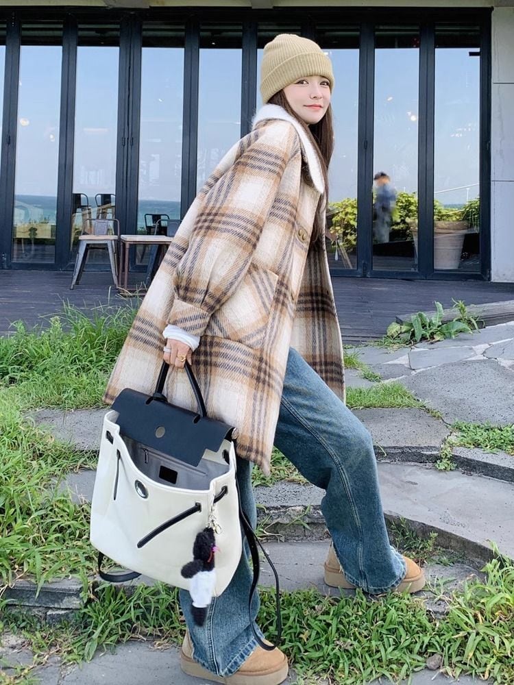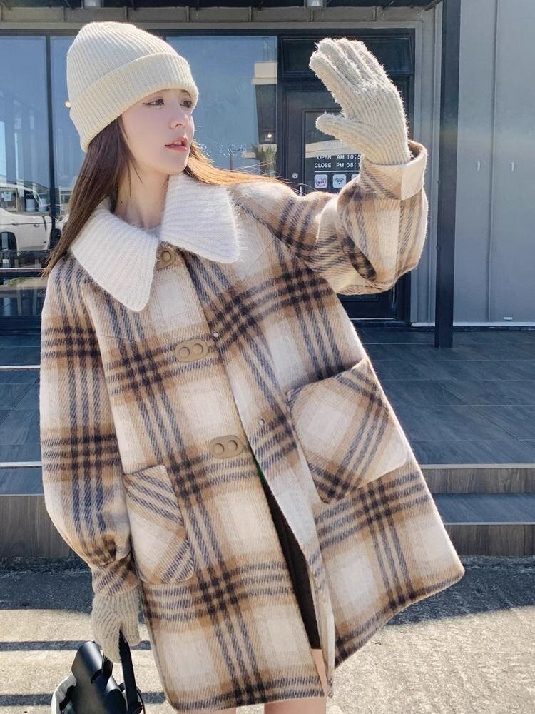 絶対欲しい 高級感溢れる チェック柄 2色選択 ミドルレングス コート <ins-9740>
