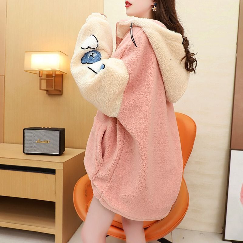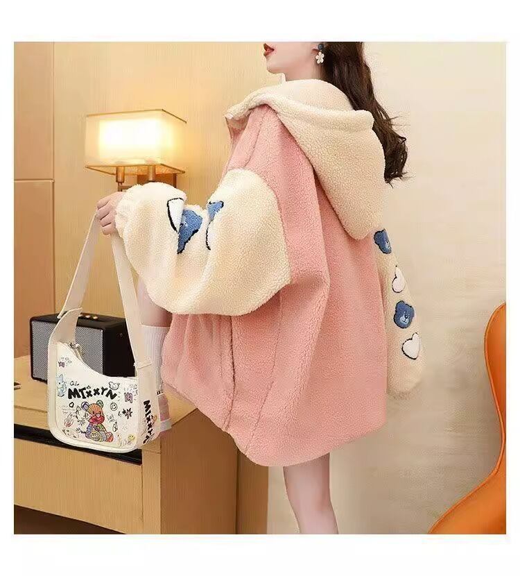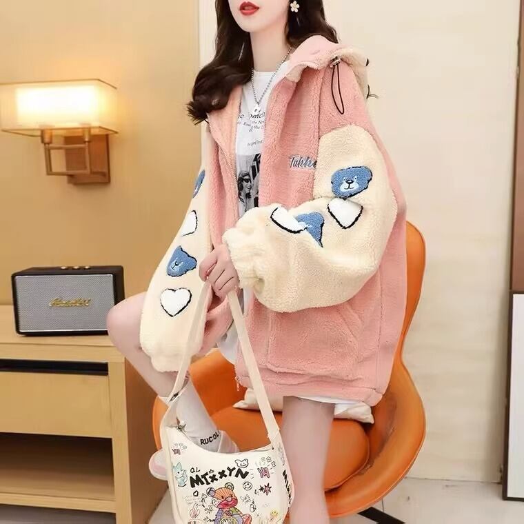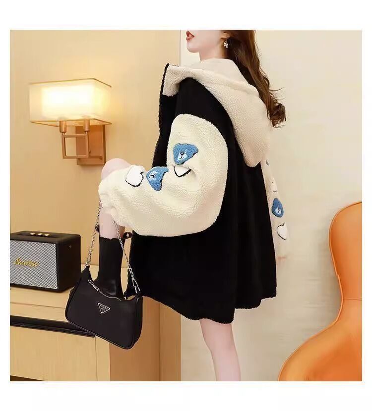売り切れ必至 快適トップス カジュアル 刺繍 切り替え 2色選択 ラムフリース コート ボアジャケット<ins-9766>