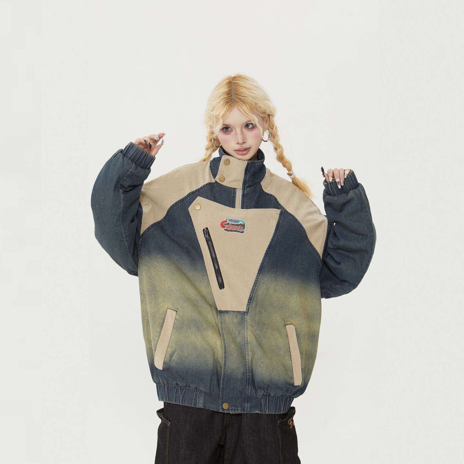 絶対流行 都市ファッショ オシャレ デザイン 切り替え デニム キルティングジャケット <ins-9850>