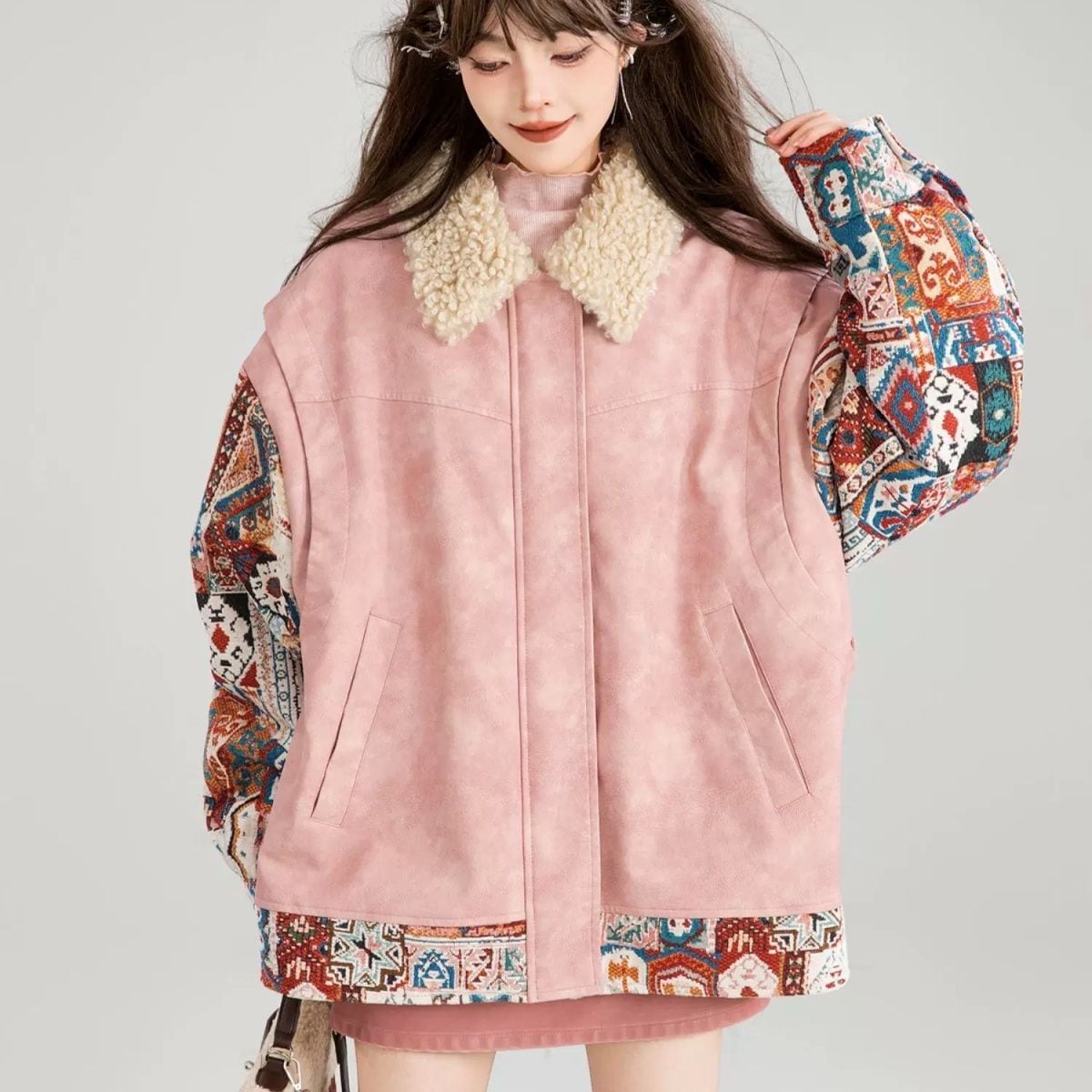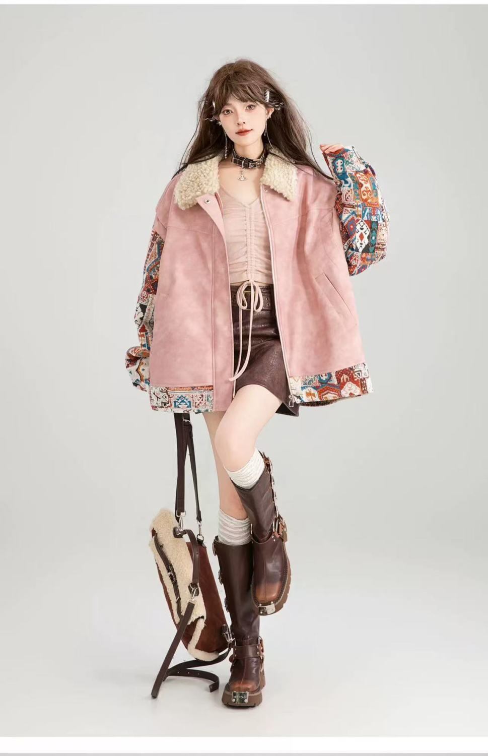 柔らかくて優しい印象 カジュアル ラムフリース コート ダウンジャケット<ins-10072>