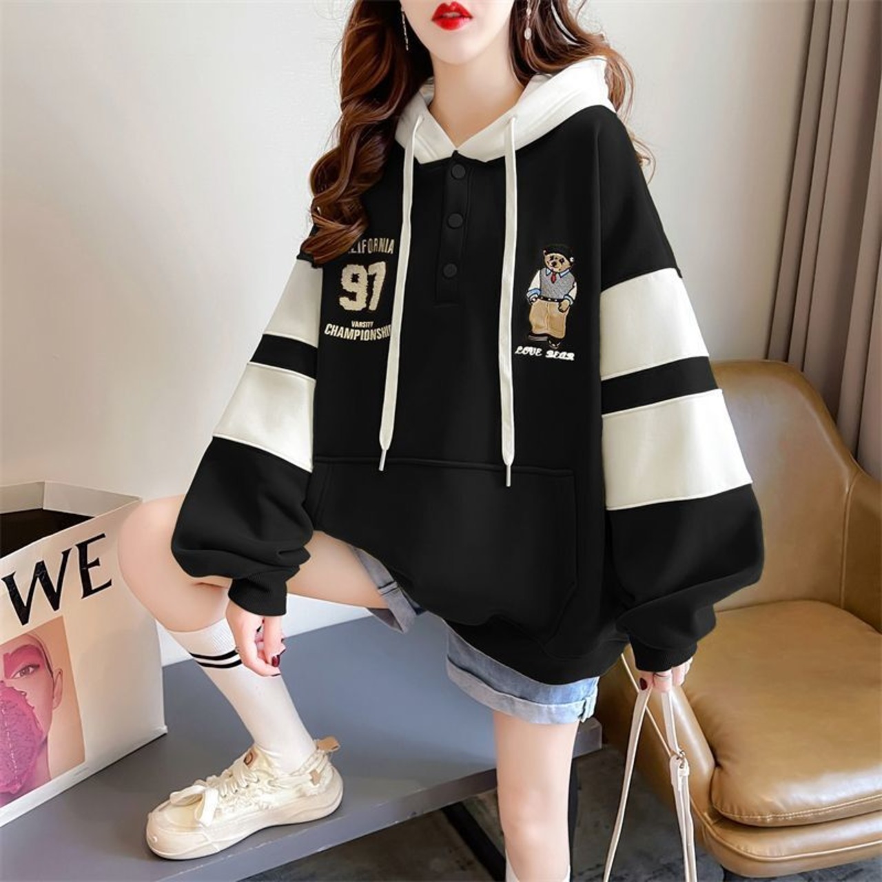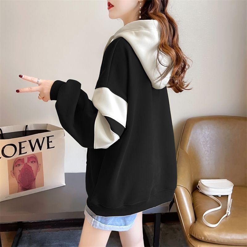 絶対欲しい スタイルアップ カジュアル 快適トップス 4色選択 切り替え プリント パーカー<ins-9962>