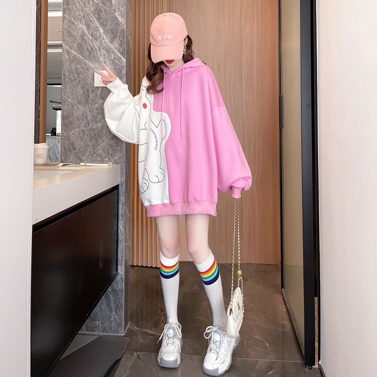 大好評 アルファベット ゆったり フード付き 長袖 トップス パーカー <ins-10088>