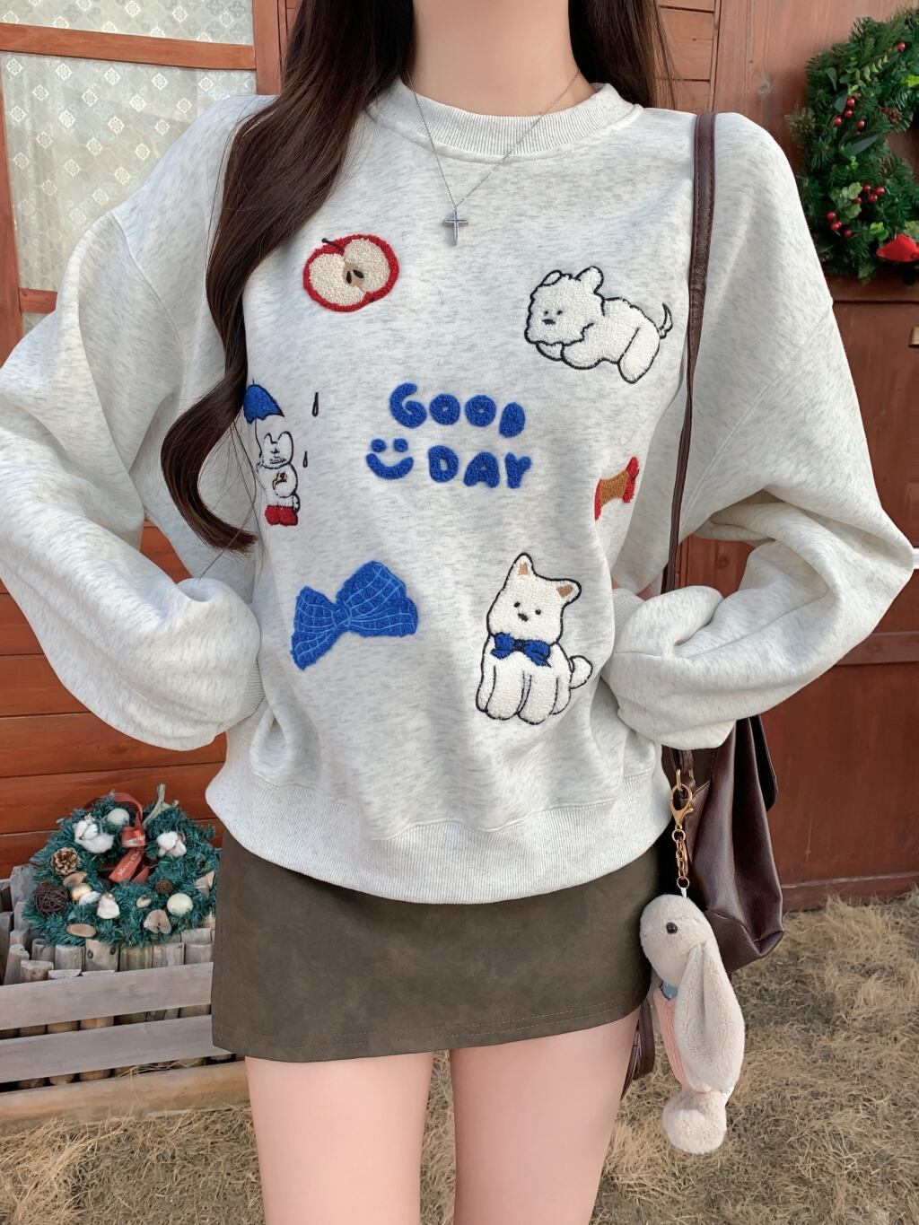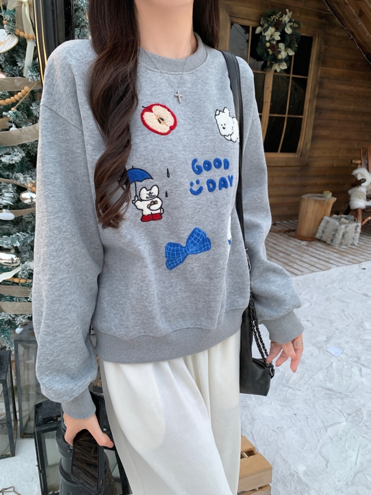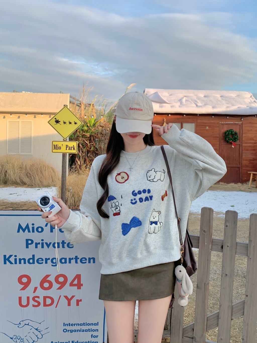 存在感抜群 トレンドアイテム sweet系可愛い 刺繍 2色選択 パーカー<ins-9892>