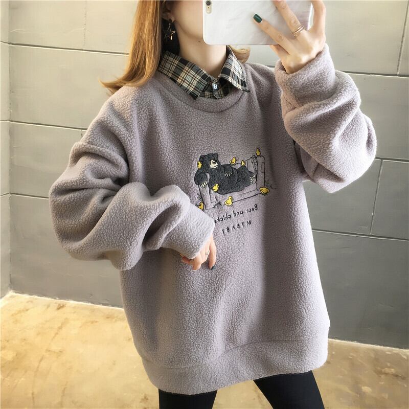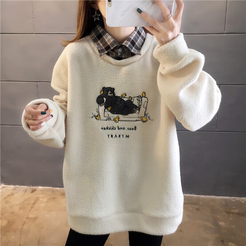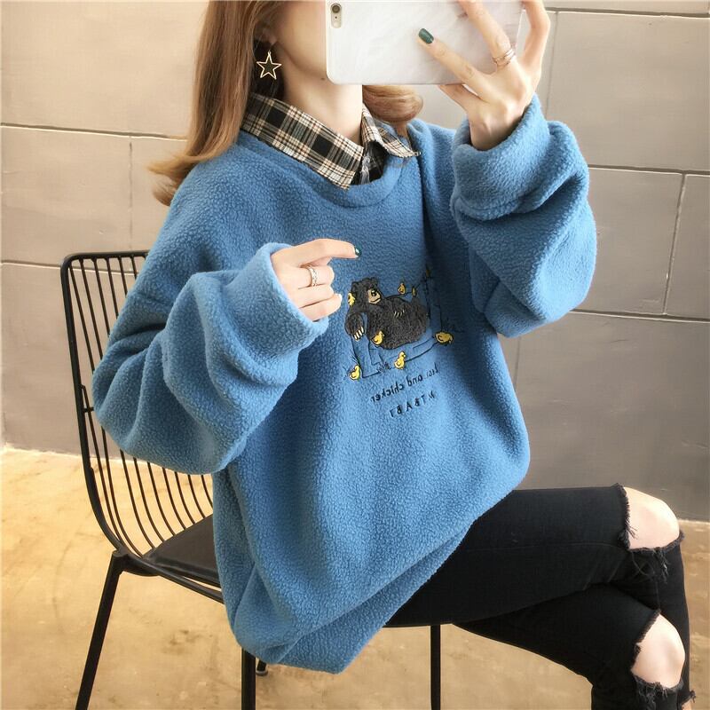 タイドファッション快適である レイヤード風 カジュアル 3色選択 シェルパフリース ジップアップパーカー<ins-9980>