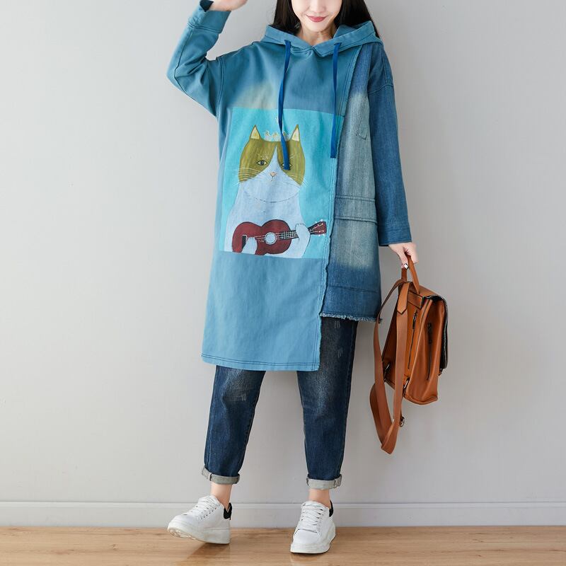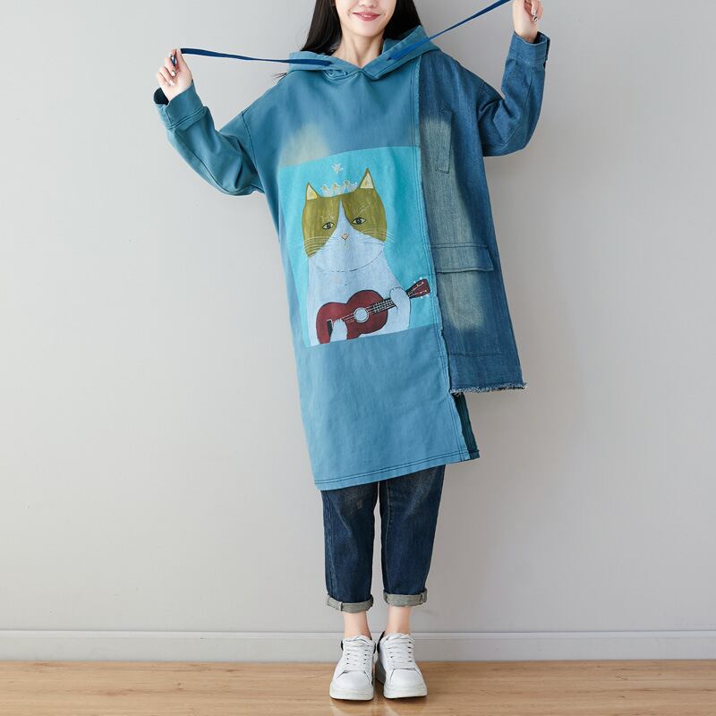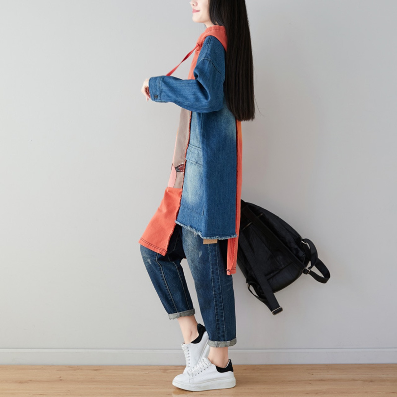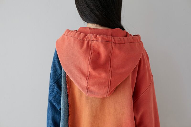 都市ファッショ オシャレ デザイン る カジュアル 個性派 デニム 切り替え 3色選択 パーカー<ins-10511>