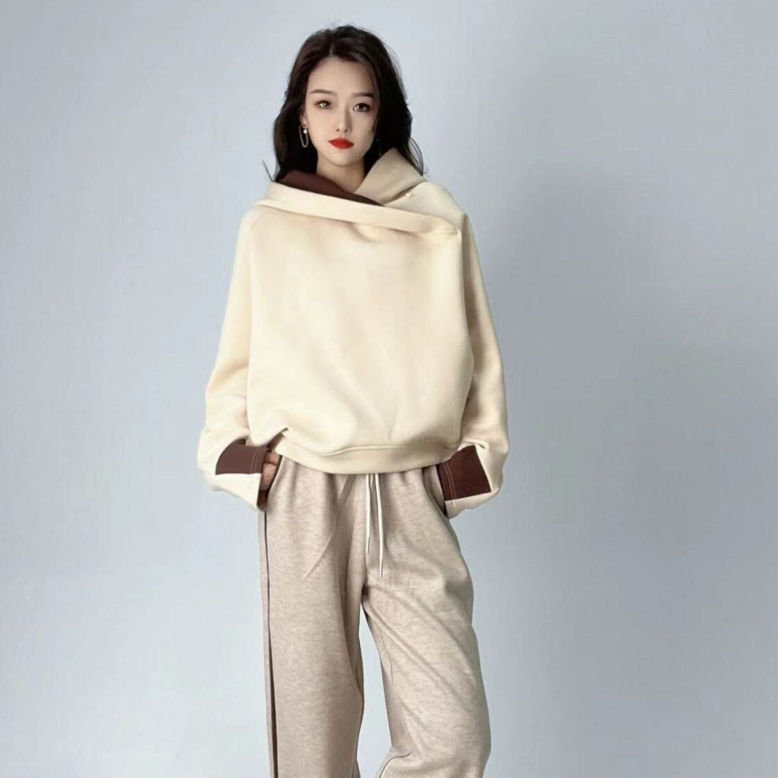 快適トップス こなれ感のあるスタイルが叶う1枚 切り替え 2色選択 パーカー<ins-10519>