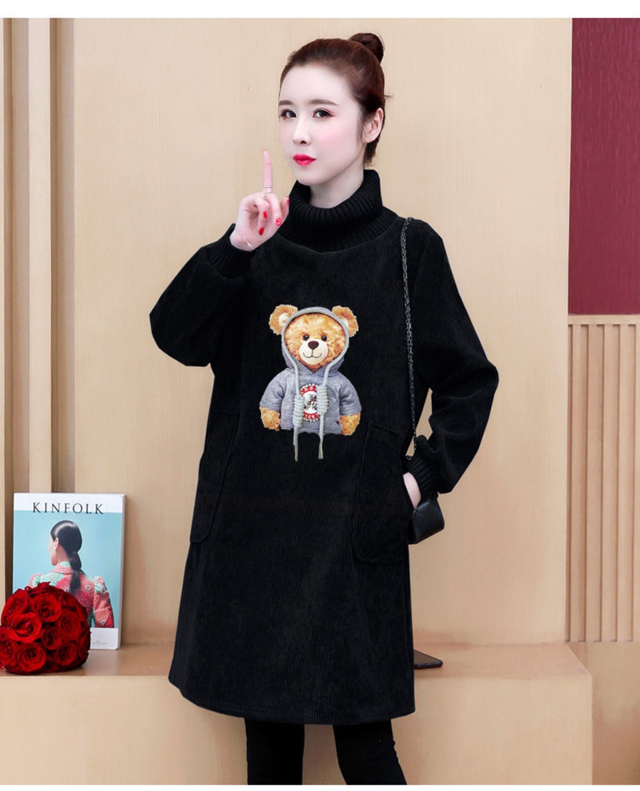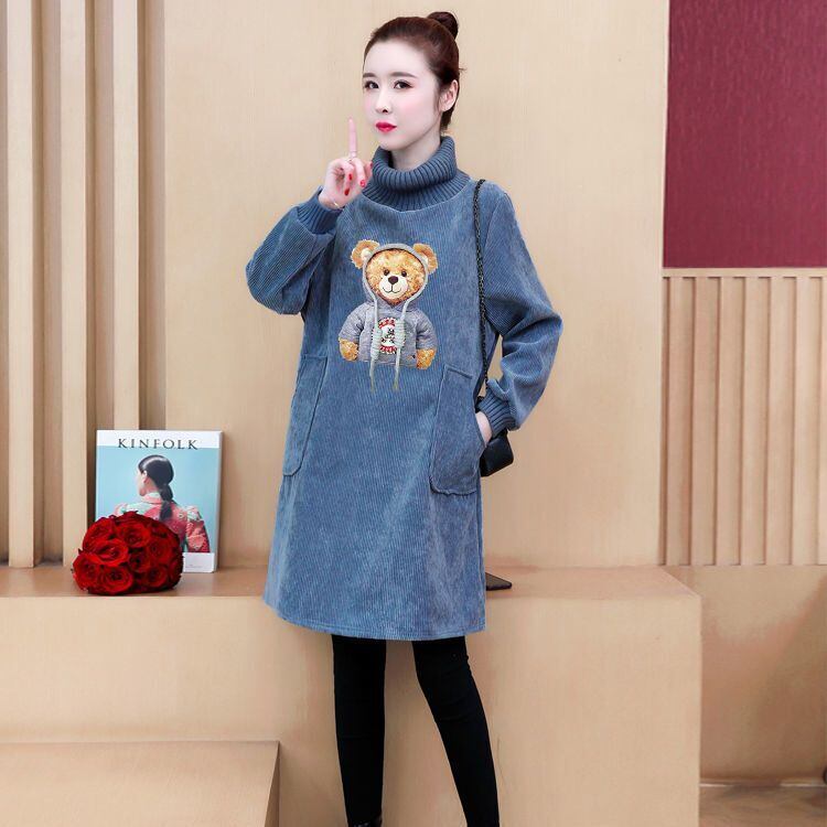 【裹起毛】質感のいい プラスベルベット長袖 4色デニム ニット セーター <ins-10226>