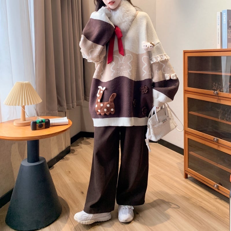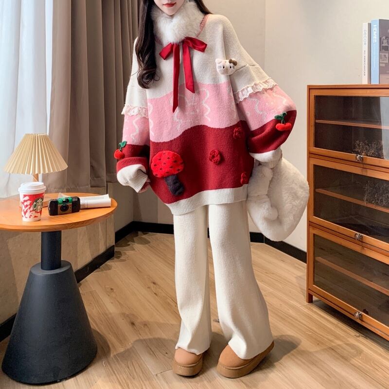 人気爆発中 存在感抜群 トレンドアイテム 大人可愛い カラーマッチング 2色選択ニットトップス<ins-10584>