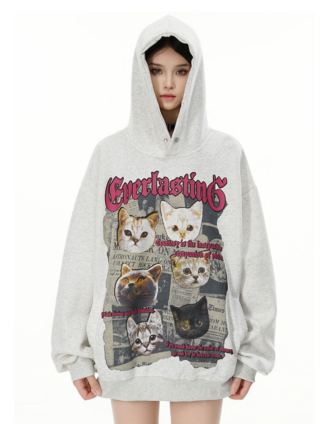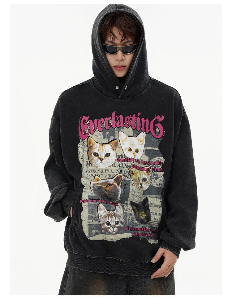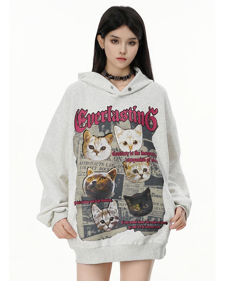 【裏起毛】主役級の存在感! 個性的なデザイン2色選択 ダブルプリント男女兼用 カジュアル パーカー<ins-10636>
