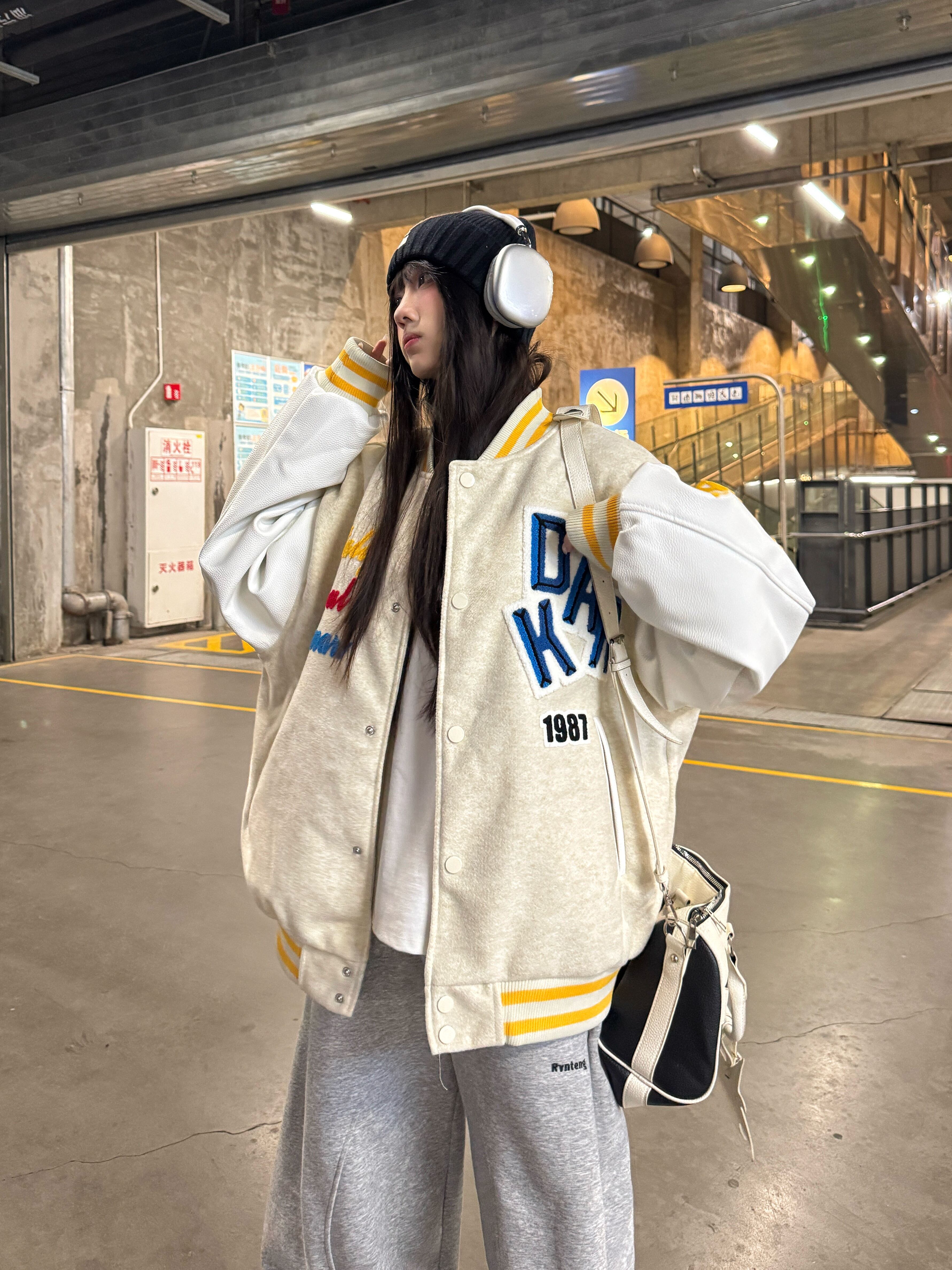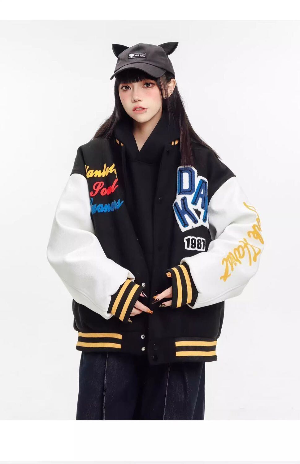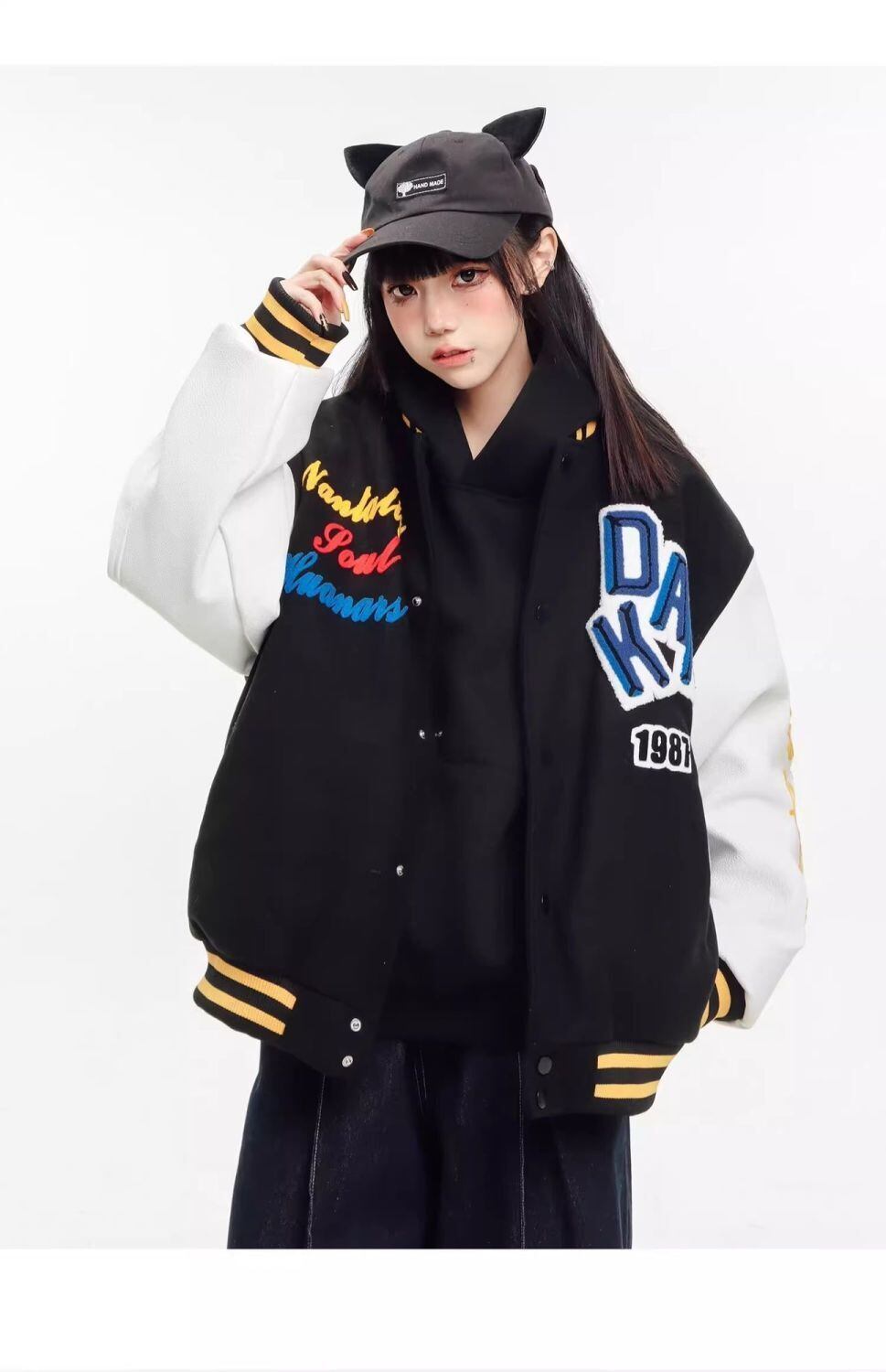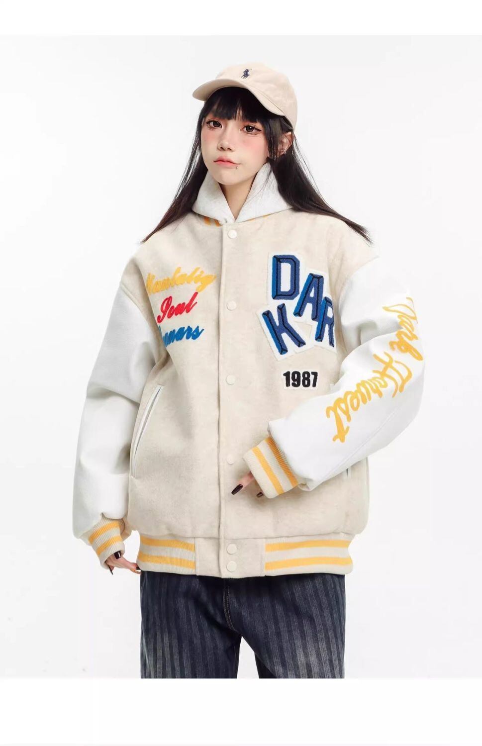 都市ファッショ オシャレ デザイン デザイン性抜群 刺繍 カジュアル 切り替え 3色選択 厚みパッド入り ジャケット <ins-10661>
