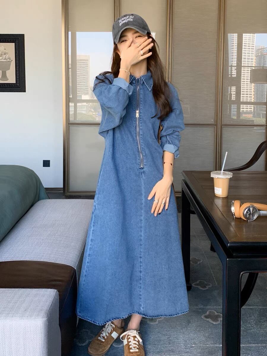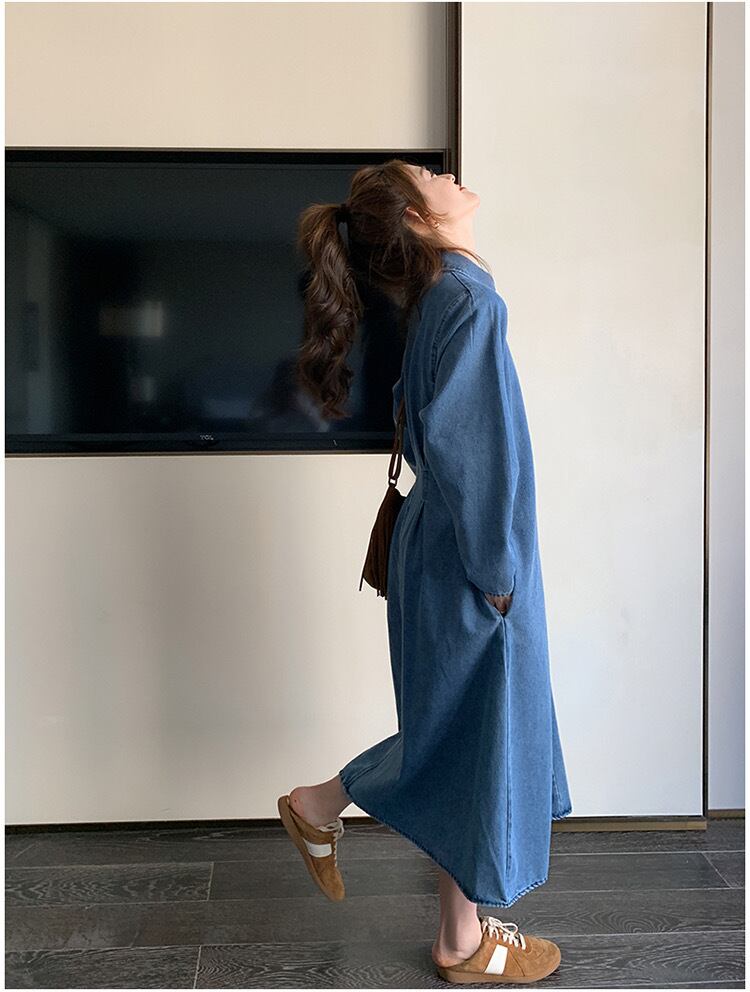 流行新作 目を奪われる ファッション感満々 プリント デニム ワンピース<ins-10381>