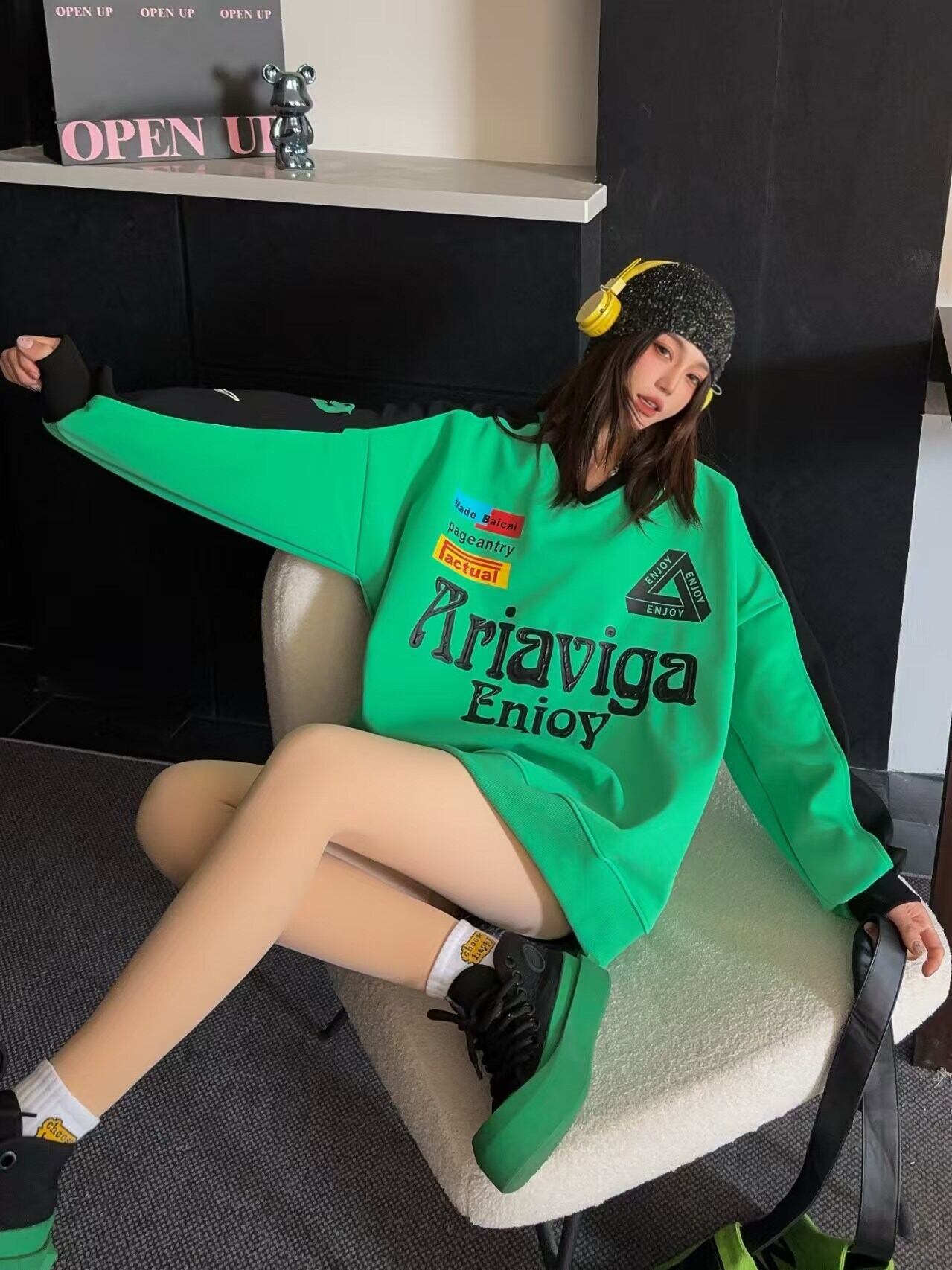 大人可愛い カジュアル プリント 4色 パーカー <ins-10462>