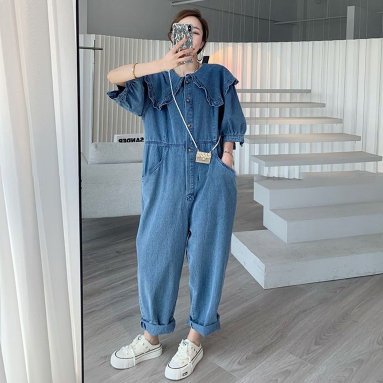 ルーズ 目を奪われる ファッション感満々 プリント デニム 2色 ワンピース<ins-10480>