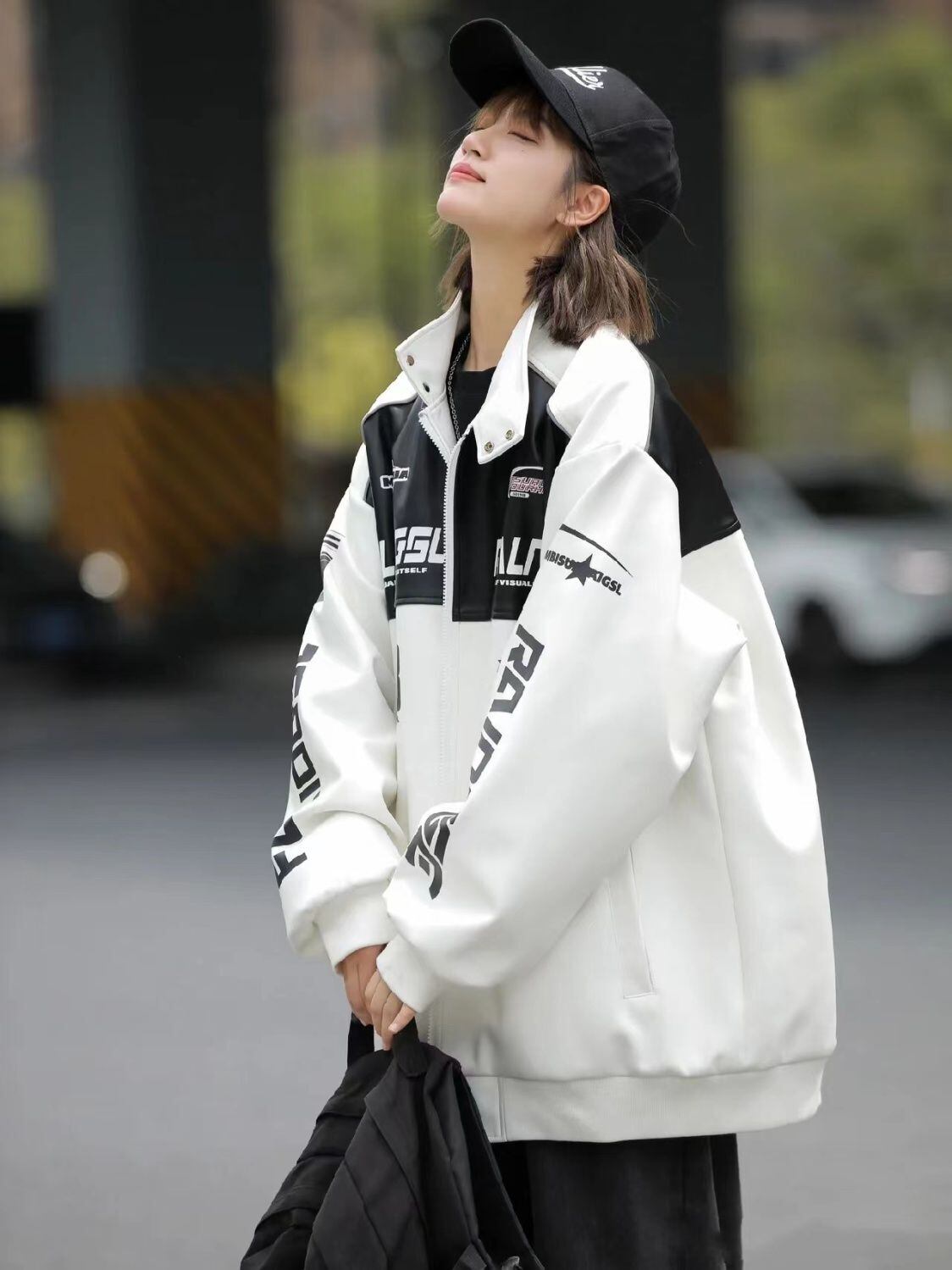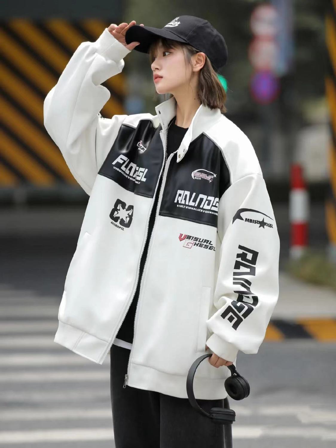 カジュアル 切り替え 2色選択 厚みパッド入り レザー男女兼用 ジャケット <ins-10494>